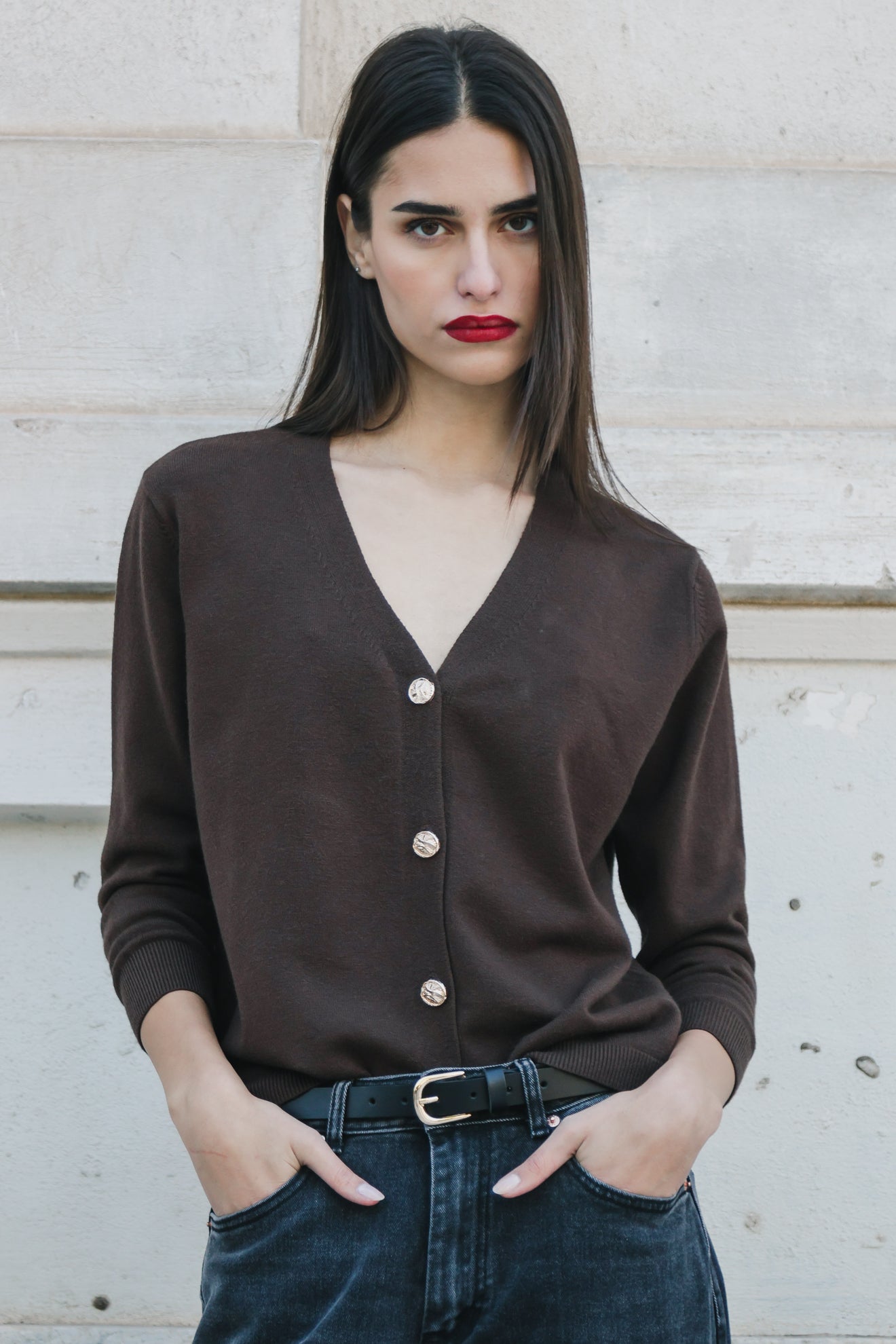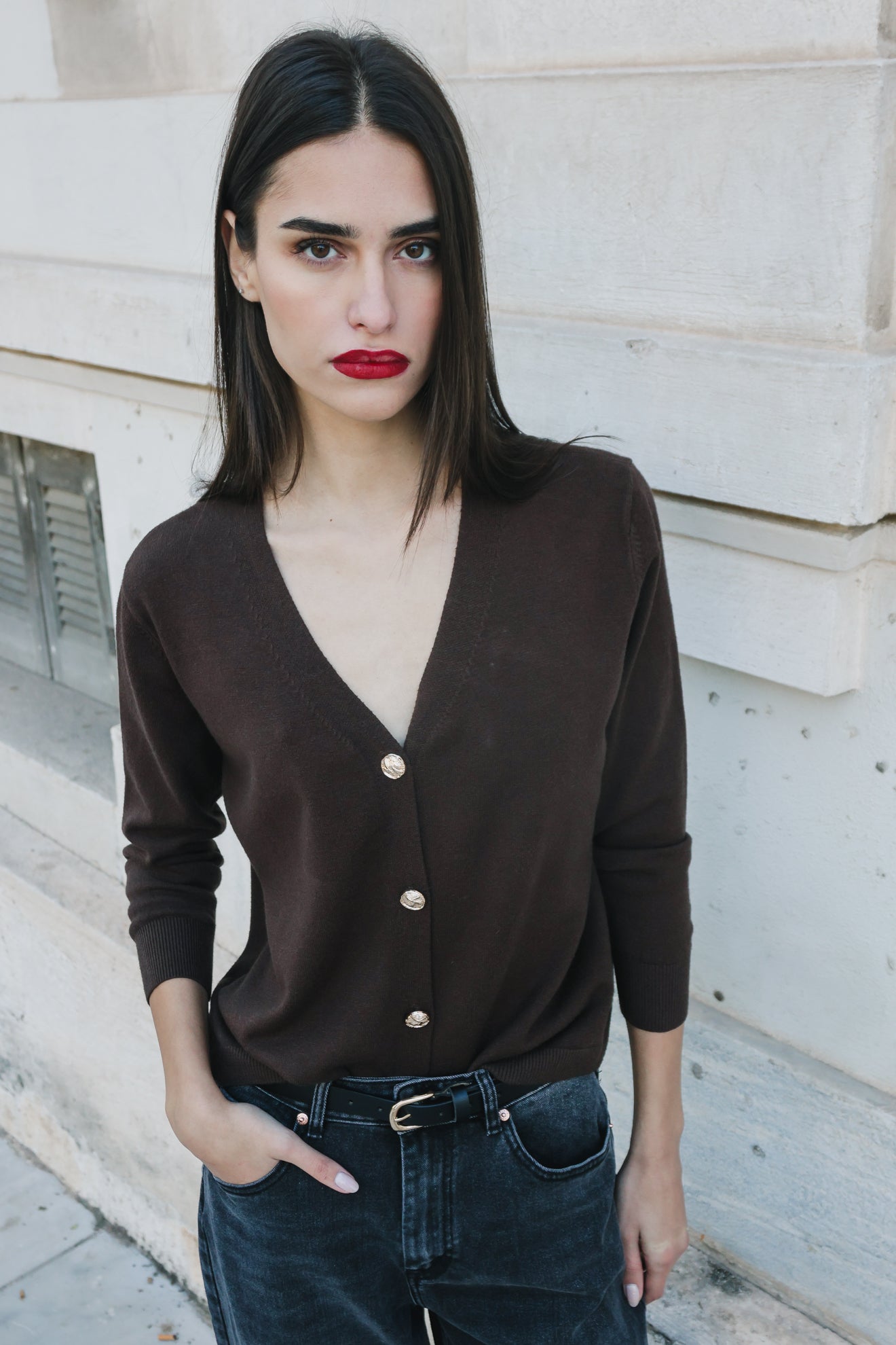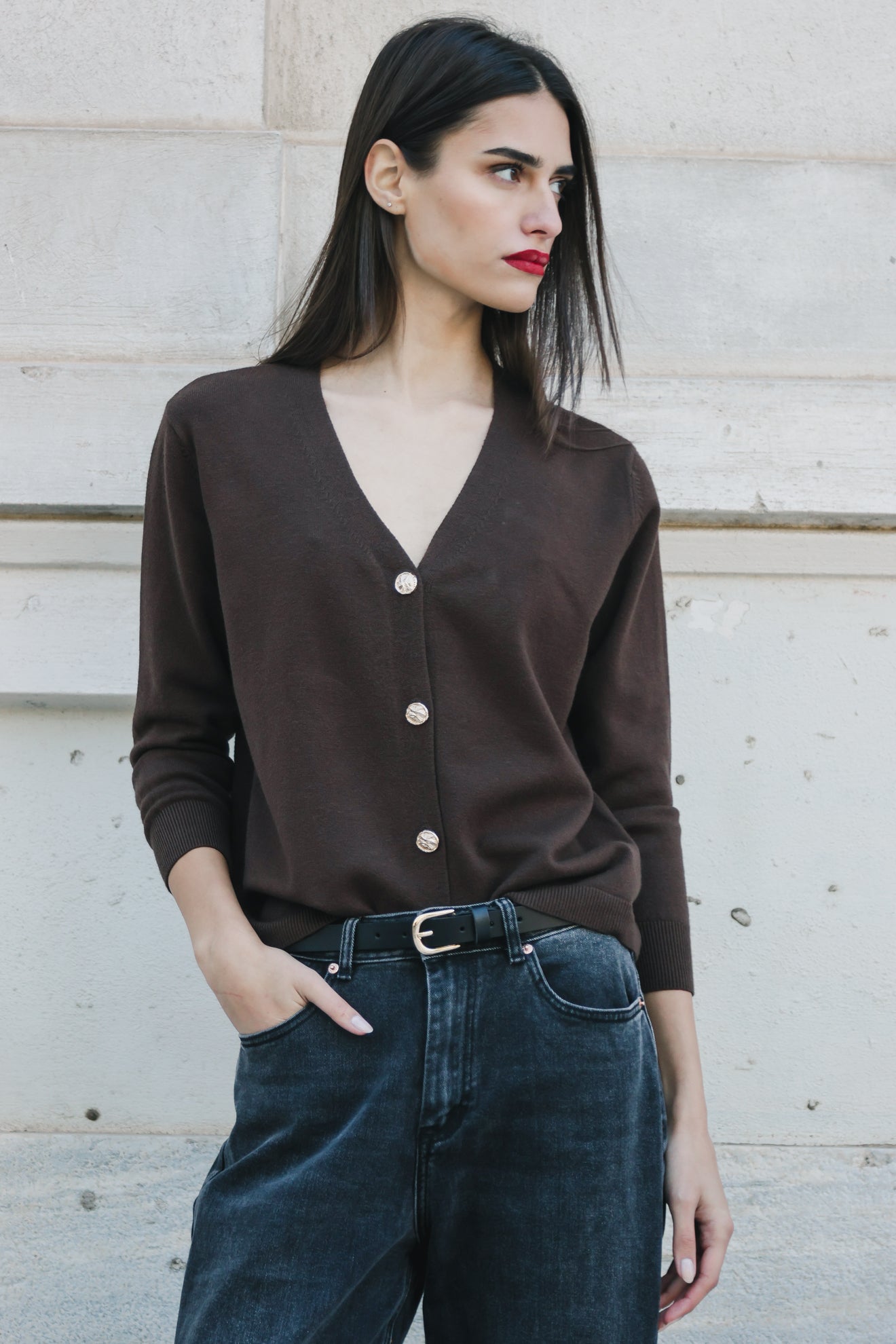 Πλεκτή ζακέτα με χρυσαφί κουμπιά