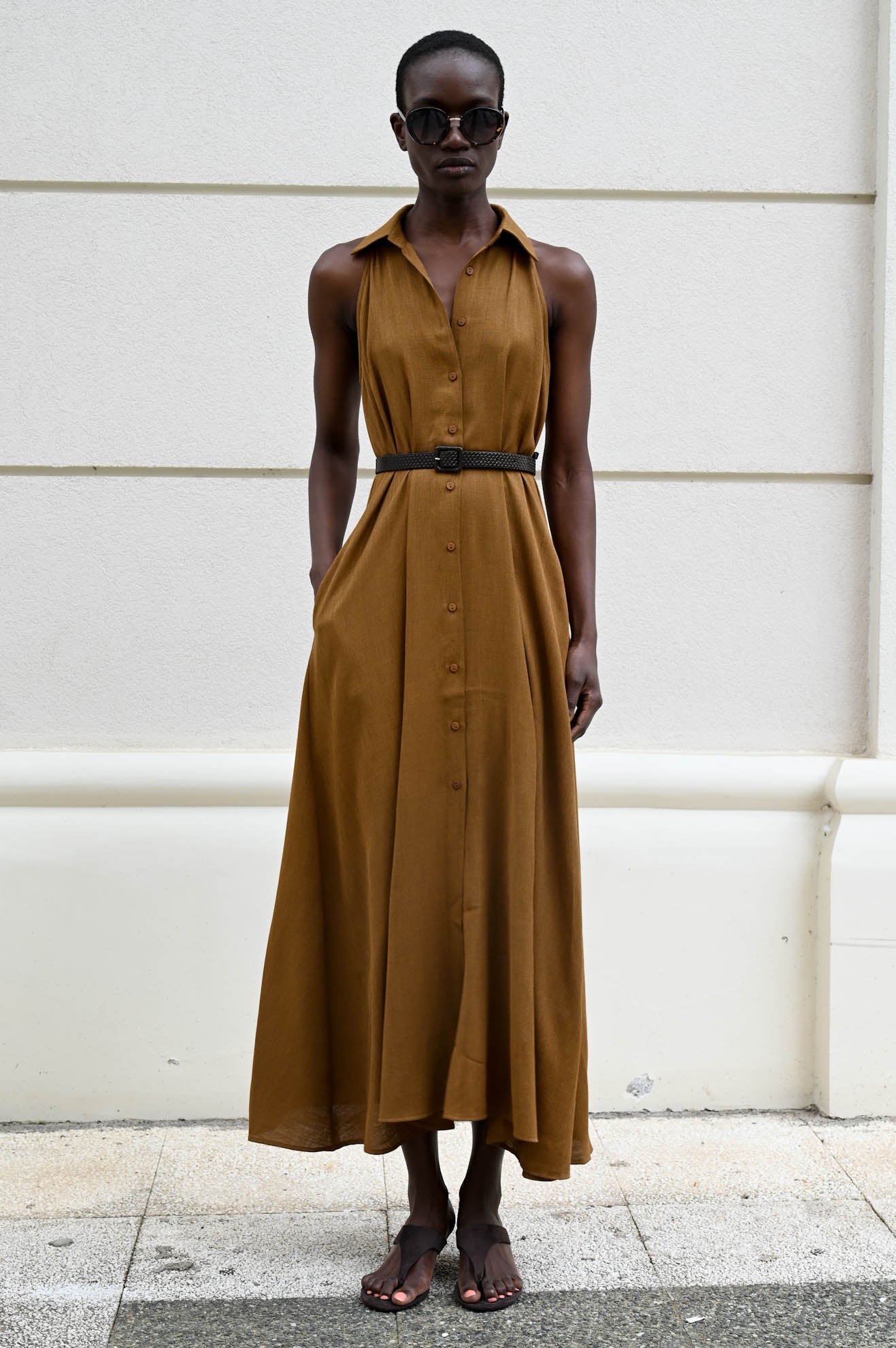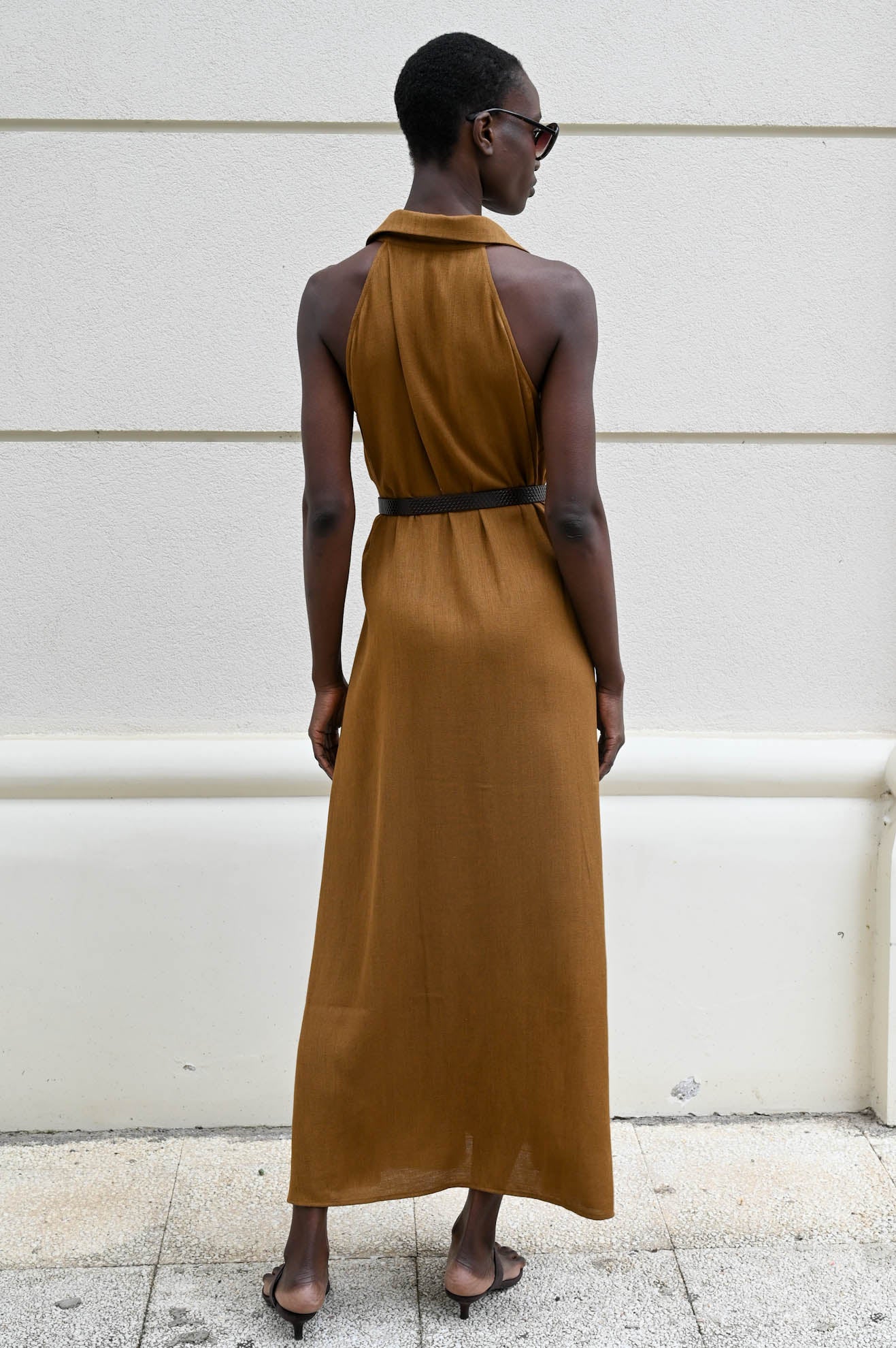 Μίντι φόρεμα με ζώνη από μείγμα λινού