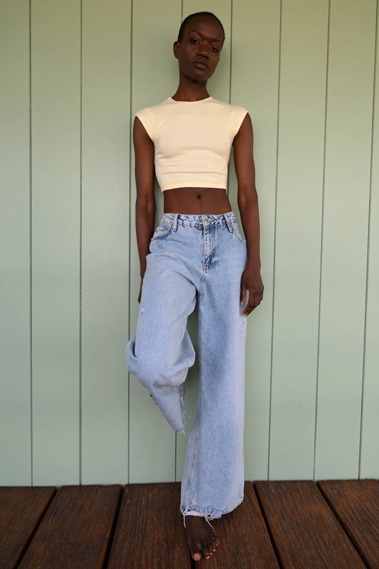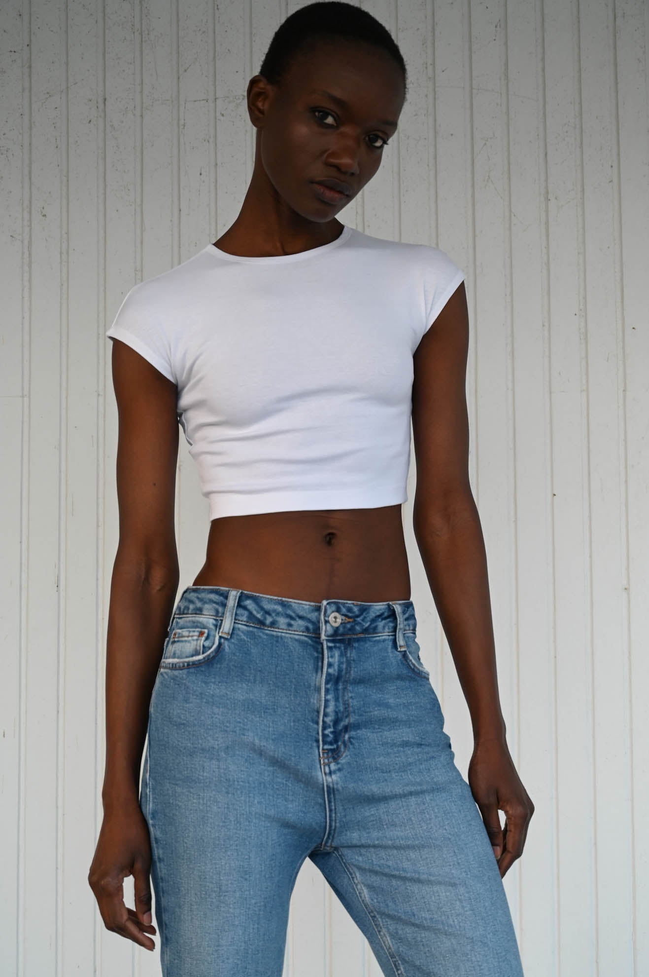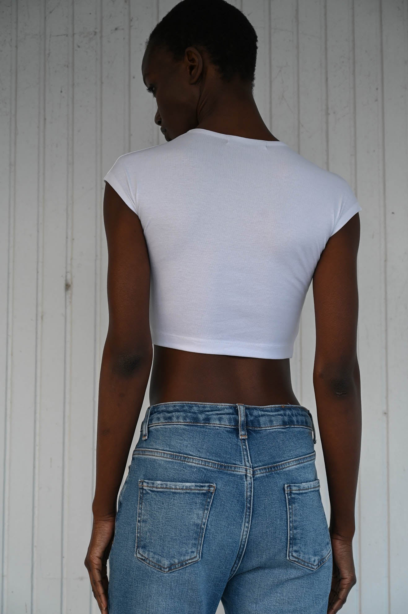 Top cropped με πολύ κοντό μανίκι